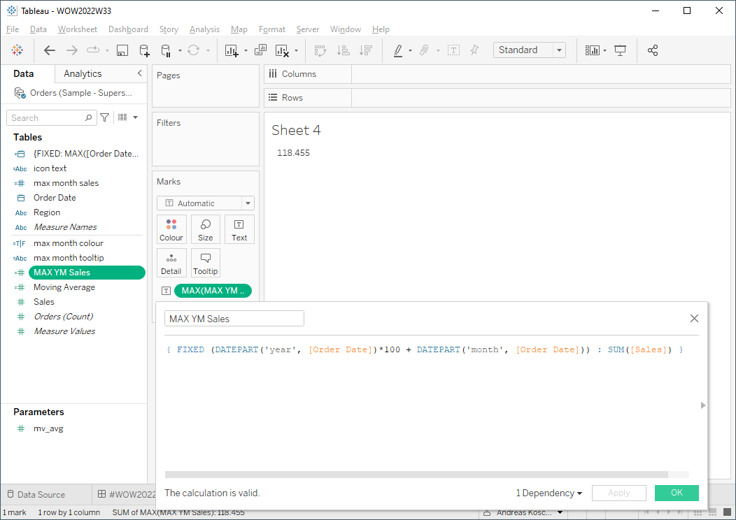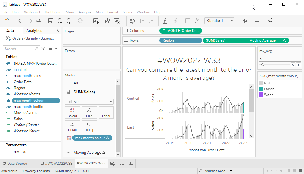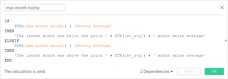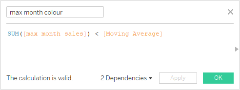 I created a second calculation that checks if Sales is less than the Moving Average.