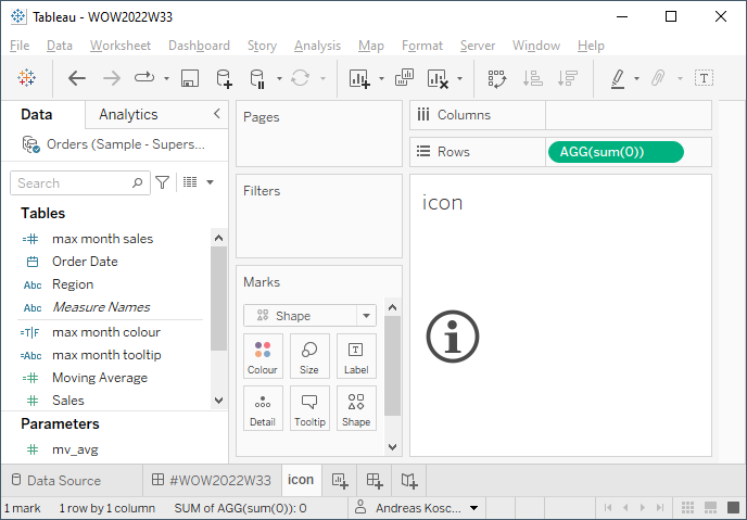 Here I entered sum(0) in the rows field and selected Shape in the Marks section.