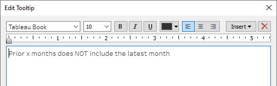 The tooltip for the last months should display if the value is above or below the prior X months average sales.